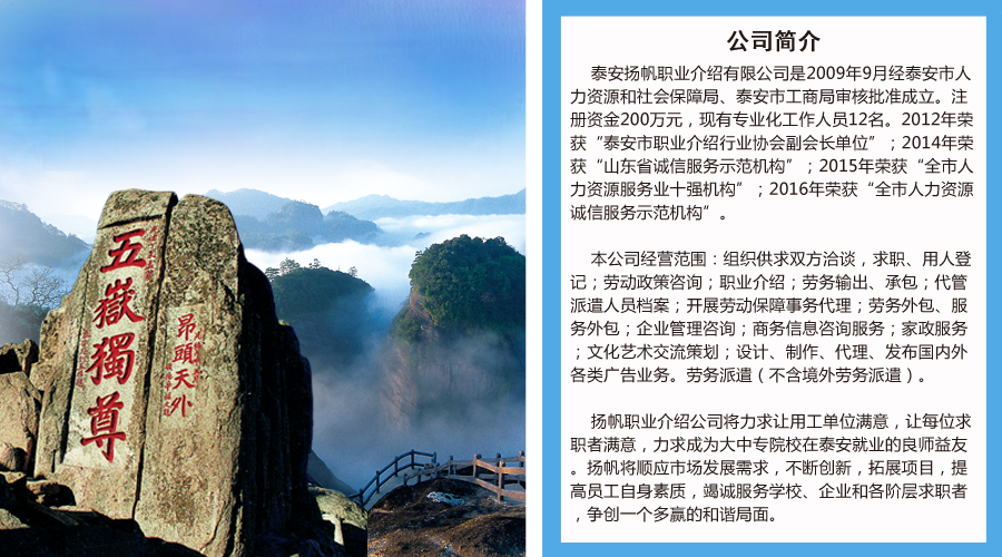 • 【招聘公告】泰安揚(yáng)帆職業(yè)介紹有限公司某國(guó)有企業(yè)招聘簡(jiǎn)章 [2025-11-28]